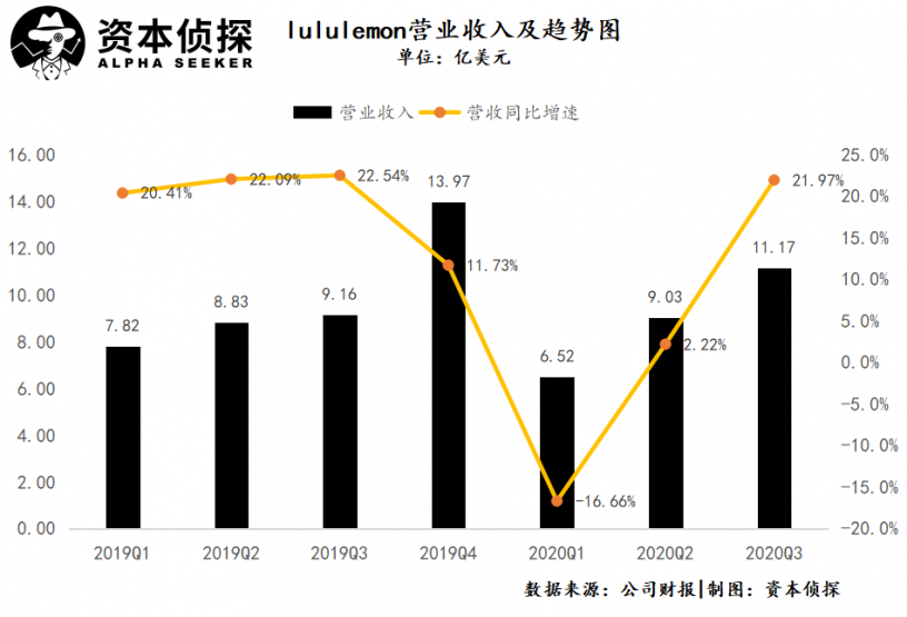 今年以來,除了受疫情影響最為嚴重的一季度,lululemon整體走出了上升勢頭。