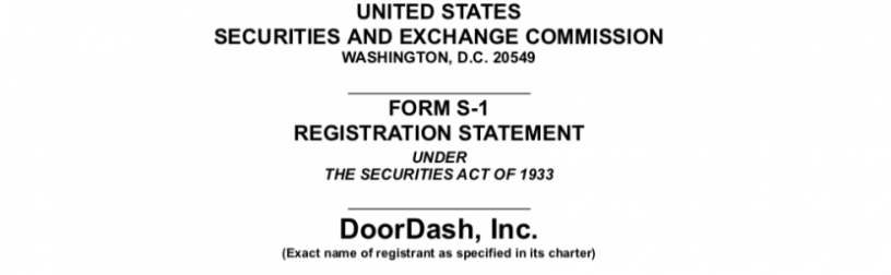據獲悉,美版最大的外賣配送平台DoorDash於美東時間11月13日正式向美國證券交易委員會(SEC)遞交S-1招股書,預計12月中旬以“DASH”為股票代碼登陸紐交所。