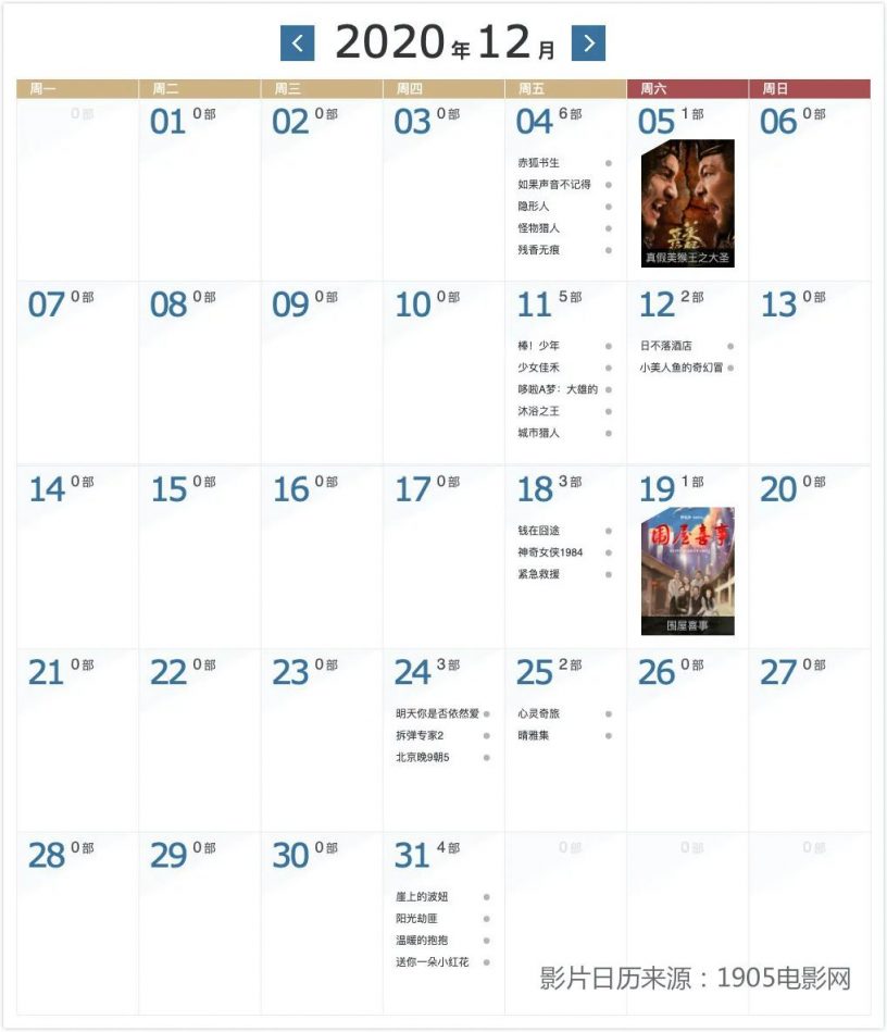 目前來看,整個12月檔期頭部電影分別在三個時間點上映。