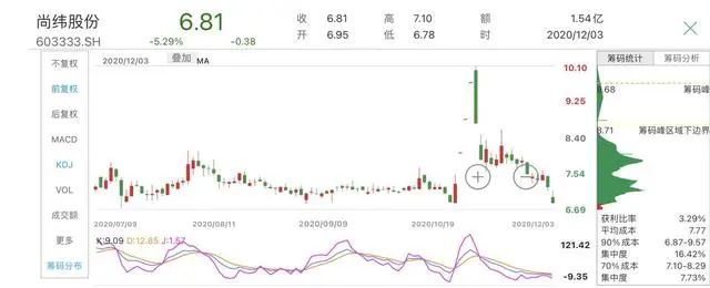 尚緯股份今年一月份股價大跌,在發布收購羅永浩直播公司消息之前,其股價一直表現平平。但公布收購事項復牌后,尚緯股份連續收穫了三個漲停板,股價從復牌前的7.27元一度沖至10.10元。但隨着直播行業新規及徵求意見稿的出台,尚緯股份股價沖高回落,截至12月3日收盤已累計下跌30%,目前股價已跌回公布收購事項之前,為6.81元,總市值約為35億元,較此前高點蒸發17億元。