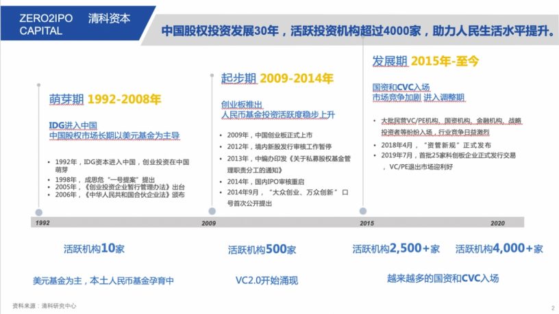 回顧中國股權投資發展30年,從美元基金到人民幣基金再到VC 2.0,越來越多的國資CVC入場。整個股權投資的發展都在為中國實體經濟助力,也在為人民生活水平的提升提供幫助。從資本管理總量來說,儘管受到今年新冠肺炎疫情影響,上半年中國股權資本管理總量仍然創出新高,達到近12萬億,成為產業發展的助燃劑。